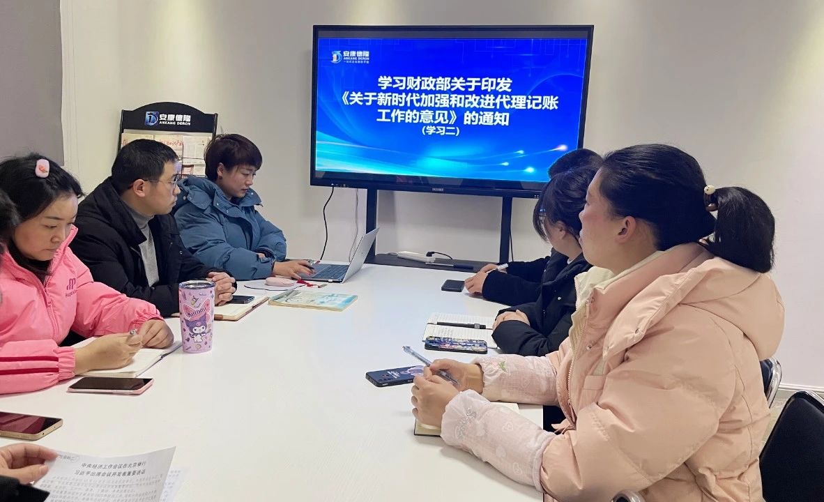 集體學(xué)習(xí)財政部關(guān)于印發(fā)《代理記賬基礎(chǔ)工作規(guī)范(試行)》的通知及相關(guān)文件?,F(xiàn)場大家還分別進(jìn)行了討論,《關(guān)于新時代加強(qiáng)和改進(jìn)代理記賬工作的意見》及《代理記賬基礎(chǔ)工作規(guī)范)》是財政部傾聽代賬行業(yè)心聲,完善內(nèi)部控制制度,促進(jìn)產(chǎn)業(yè)發(fā)展,打造法治化、規(guī)范化、市場化的營商環(huán)境的有力舉措。為統(tǒng)一執(zhí)業(yè)標(biāo)準(zhǔn),推動代理記賬機(jī)構(gòu)規(guī)范承攬和開展業(yè)務(wù)、提升內(nèi)部管理水平、強(qiáng)化質(zhì)量管理責(zé)任提供了基礎(chǔ)制度支撐。會議強(qiáng)調(diào),一要認(rèn)真學(xué)習(xí)貫徹相關(guān)文件精神,以“起步就是沖刺、開局就是決戰(zhàn)”的狀態(tài)迅速投入到各項工作中;二要對標(biāo)一流,實做趕超,全面拉升干事創(chuàng)業(yè)的高線,堅持在學(xué)中干、在干中學(xué),深耕一域、精耕細(xì)作;三要強(qiáng)化管理,嚴(yán)格規(guī)范,堅決守牢法紀(jì)規(guī)章的底線。