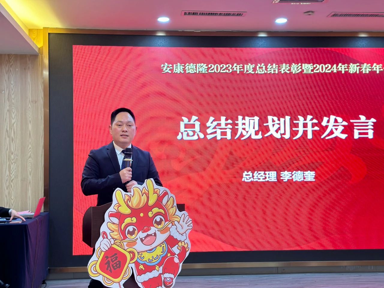 李德奎在致辭中感謝為德隆發(fā)展拼搏奉獻和努力付出的每一位同事同仁、客戶朋友、員工家屬們,是他們讓德隆這一年的步伐走得堅定而充滿力量。回顧了公司過去一年經(jīng)營發(fā)展中取得的成效與遇到的困難險阻,展望新的一年,李德奎提出"穩(wěn)定點"、"突破點"、"驚喜點"、"探索點"四個點實現(xiàn)2024年服務(wù)大幅提升與業(yè)績逆勢增長。