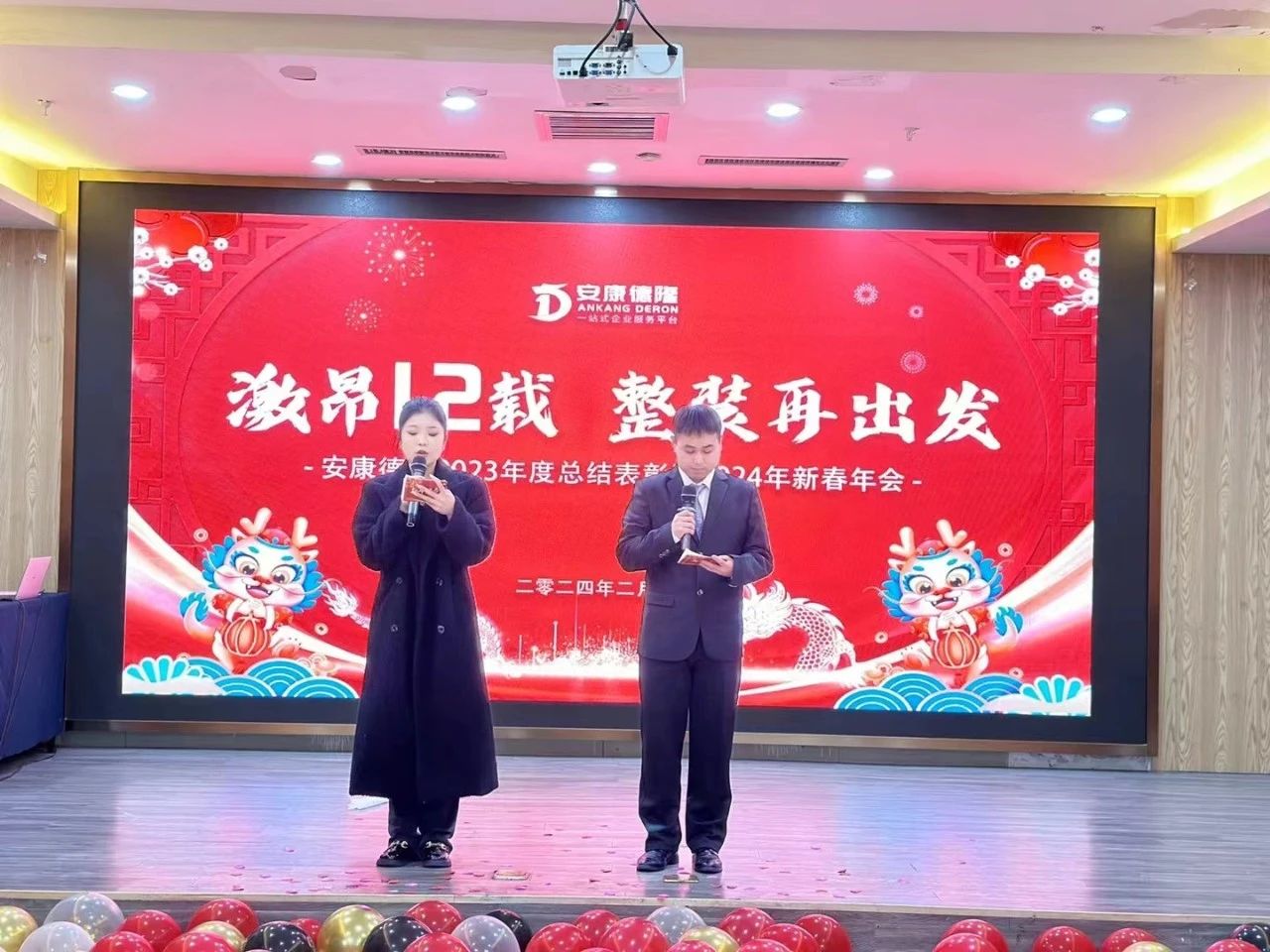 龍行龘龘辭舊歲,前程朤朤迎新年。為了更好的總結(jié)2023年的工作,謀劃2024年度工作任務(wù),2月4日下午,公司舉行了以“激昂12載 整裝再出發(fā)”為主題的年度總結(jié)表彰暨2024年新春年會。全體人員歡聚一堂,回顧過去、憧憬未來、表彰模范、共享盛宴、共迎新年!