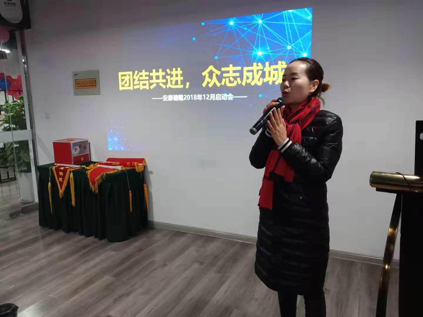 表彰完畢,會議第三項德隆公司副總經(jīng)理劉正琴對12月份工作作了詳細的計劃及指示。